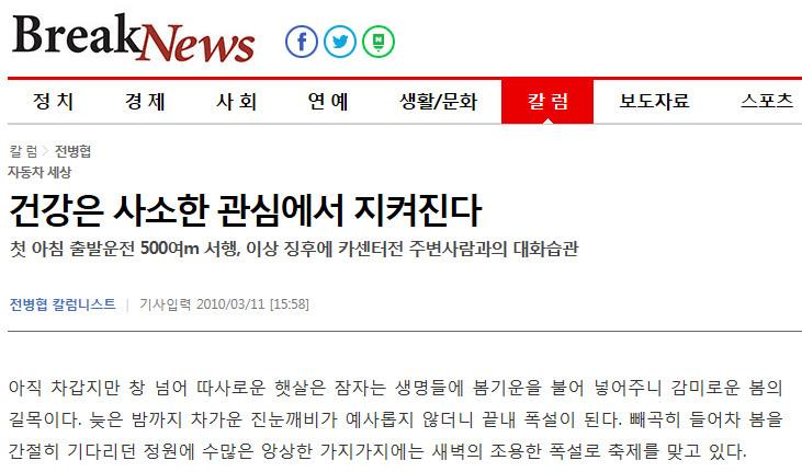 건강도 꾸준한 관심과 관리가 뒤따라야 건강이 유지될 것이다. 늘 스트레스로 넘쳐나는 생활에서 과로, 만성피로, 감기 등 사소하고 조그마한 기초질병을 지나친 경우 자리에 몸져눕거나 병을 키워 성인병이나 수술 등 자칫 불치의 큰 질병으로 연결되기 마련이다.