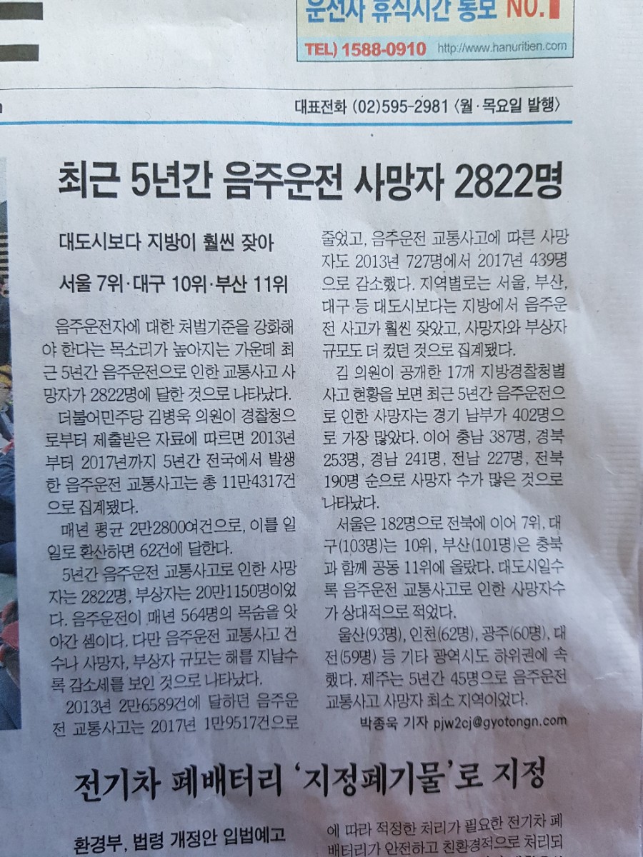 2013~2017년 5년간 음주교통사고는 총 11만 4317건, 사망자 2822명, 부상자는 20만 1150명 이라고 합니다.