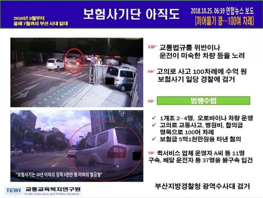 고의사고를 내고 치료비 위자료 뜻던 일당들이 검거 됫네요^^