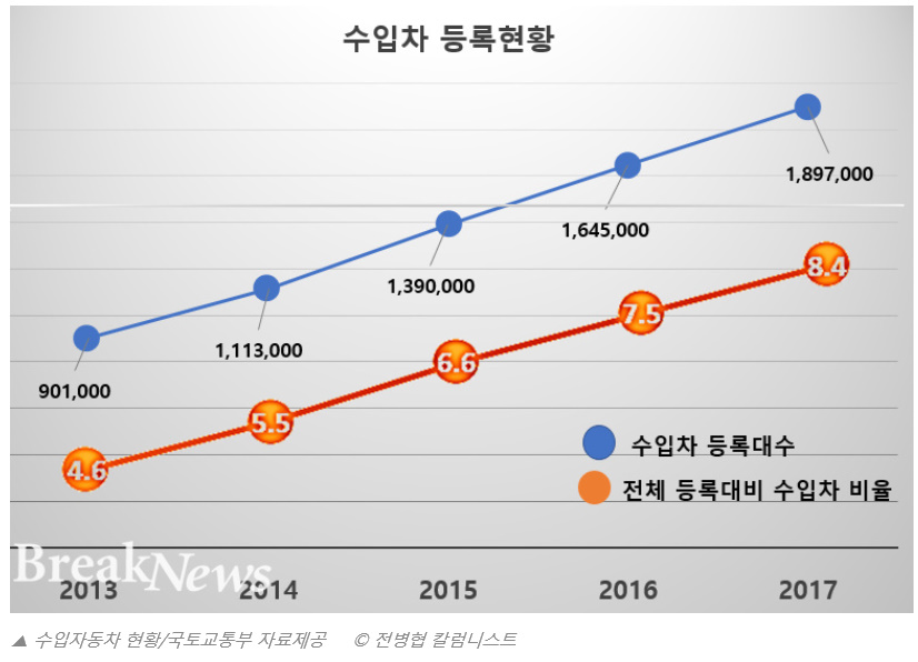 우리 자동차시장이 수입차로 끈임 없이 넘쳐나고 있다. 미국의 디젤게이트(Dieselgate 2015년 9월)라는 폭스바겐 디젤 배기가스 조작을 둘러싼 일련의 스캔들로 배출가스 기준치가 40배나 발생한다는 사실이 밝혀지고 나아가 같은 구룹(AG)산하 고급 브랜드인 아우디도 동일 현상에 미국은 물론 우리 나라도 큰 파장을 몰고오더니