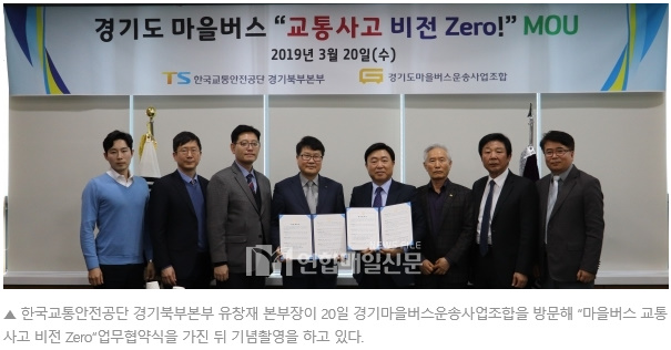 한국교통안전공단 경기북부본부(본부장 유창재)는 3월 20일 경기마을버스운송사업조합과 “마을버스 교통사고 비전 Zero”화를 위해 업무협약(MOU)을 체결하고 안전한 교통문화 조성을 위한 교육·홍보 활동을 공동 추진한다고 밝혔다.