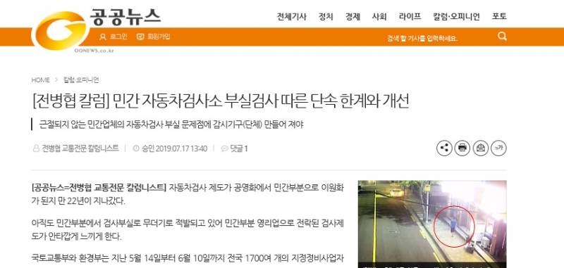 - 근절되지 않는 민간업체의 자동차검사 부실 문제점에 감시기구(단체) 만들어 져야 자동차검사 제도가 공영화에서 민간부분으로 이원화가 된지 만 22년이 지나갔다. 아직도 민간부분에서 검사부실로 무더기로 적발되고 있어 민간부분 영리업으로 전락된 검사제도가 안타깝게 느끼게 한다. 국토교통부와 환경부는 전국 1,700여 개의 지정정비사업자(이하 ‘민간검사소’)*중 부정 검사가 의심되는 271곳에 대한 특별점검을 ‘19.5.14.부터 6.10.까지 실시한 결과 47곳을 적발했으며 앞으로 민간검사소 부실검사를 지속적으로 줄여가겠다는 발표를 했다. 이번 점검은 불법·부실검사 방지대책(’18.11.21)에 따라 자동차검사관리시스템에서 민간검사장의 검사정보를 분석하여 시행한 것이다. 전국을 5개 점검팀으로 구성하였고 민관합동점검 방식으로 진행됐으며, 검사결과 합격률이 지나치게 높은 업체, 종전 합동점검 시 적발업체 등 부정검사 의심업체를 중심으로 271곳을 점검 대상으로 선정했다. 불법․부실검사가 의심되는 검사소 271곳을 점검한 결과, 점검대상의 17.3%인 47곳을 적발했다. * 2018년 상반기 합동단속(‘18.6.21~7.6): 148곳 점검 44곳 적발(적발률 29.7%) 2018년 하반기 합동단속(‘18.11.5~12.7): 286곳 점검 61곳 적발(적발률 21.3%) 불법개조 차량과 안전기준 위반차량을 합격처리하여 적발된 32(68%)건이 절반을 넘었으며, 검사기기 관리미흡 9건(19%), 기록관리 미흡 3건 및 업무범위 초과 2건 등이다. 적발된 민간검사소 47곳은 검사소 업무정지(47건), 검사원 직무정지(46명) 등의 무거운 행정처분이 예고되고 있다. 또한 국토교통부 담당과장은 교통안전공단 VIMS(자동차검사관리시스템) 담당직원 3명으로 구성되어 상시 불법검사 모니터링이 되고 있으며 이 시스템으로 3월 5일~ 5월까지 72개 업체를 적발했다고 한다. - 처벌기준 대폭 강화만으론 정부책임 못 벗어나고 문제해결 쉽지 않아 전체 271곳 대상에서 47(17.3%)곳 적발로 업무정지 대상이라니 참 어이없는 일이다. 더구나 철저히 배제되어야 하는 불법 개조된 차량을 다수 합격시켰으며, 고장 난 검사기계로 합격을 시킨 것 등 뭐라 표현할 말이 생각나지 않게 한다. 더욱이 지난해 상․하반기 2회에 434 업체를 대상에서 105곳이 부실검사로 적발되었는데 민간검사소의 부실검사의 도덕적 헤이에 어처구니가 없다. 현재 개정되고 있는 자동차종합검사 시행 등에 관한 규칙(2019. 10. 24 시행예정)에서 부실검사에 대한 검사업체와 검사요원의 처벌이 대폭 강화된다. 과연 생계형인 민간검사소가 처벌강화 만으로 문제해결이 될까? - 자동차 검사제도 민영화 60년대 70년대 경험한 시행착오 검사제도 2원화 이 후 민간검사소가 부실검사에 형식적인 검사로 끈임 없이 여론의 대상이었고, 22년 세월에 고착되어진 것은 국토교통부가 제도를 방관하고 감독기관인 지자체(자치시구)가 방치하면서 너무 느슨한 지도감독과 솜방망이 처벌의 결과로서 관리에 대한 사각지대가 컸음은 단속결과가 입증해주는 것이다. 과거 시행착오를 반복해가는 정책에 다시 질타를 보낸다. 당시 공공부문 민간이양이란 큰 명분에 치우쳐 많은 공적기능이 민간분야와 이원화 되는 시기적 편승도 있었지만 제도를 60년대 민영화를 거치고 경험해본 자동차 검사였다. 자동차검사의 뿌리는 1915년 내무부령으로 제정된 자동차취재규칙에 근거하여 1917년부터 정부가 검사를 시행하였고, 1962. 1. 도로운송차량법에 의거 교통부로 이전되어 민간업체에서, 1975. 1. 한국자동차검사공사(유한회사)로 민영화로 검사를 하면서 검사부조리, 형식적인 검사 등으로 무질서함과 검사시설의 낙후로 1981.7.1.교통안전진흥공단으로 자동차검사 공영화시대를 열었다. 민영화에서 만연했던 검사부조리, 부실검사 척결과 검사시설 현대화, 검사소 대형화와 제도의 공영화가 명분이었다. 2007년. 4월에 자동차검사를 교통안전공단과 자동차정비사업자가 함께하는 현재의 이원화 검사체제로 되었다. 많은 반대에도 불구하고 과거의 60, 70년대를 답습하는 제도가 회귀한 것이다. 80년대 90년대를 지나오면서 자동차 100만대 1000만대 시대를 거치며 급격히 늘어나던 자동차 시대에 맞추어 교통안전공단은 자동차검사소 증설을 못했다. 검사물량을 소화할 검사소와 시설이 턱없이 부족했다. 100만대 시대부터 1000만대 시대를 대비한 교통안전공단 내부는 검사소 증설 여론이 거셌으나 경영자들에게는 관심권 박의 사안 이었다. 이는 건설교통부의 방침에 순응하기 위한 상식이었고 자동차가 늘어나면 출장검사장을 확보하거나 공단에서 넘치는 물량만큼만 이원화시켜 공단의 통제로 우량한 정비공장을 대상으로 민간검사를 한다는 발상이었다. 건설교통부는 검사장 증설대신 자동차성능연구소를 설립하는 정책에 공단의 모든 자금이 초기투자 자금으로 투여되고 검사는 2007. 4. 이원화 된다. 대부분 민간검사소는 중소업의 영리가 목적이고 검사 제도를 돈벌이 수단이었으며, 많은 경우 변칙운영과 부실검사로 사회적물의가 자주 발생하고 감독기관은 적극적 관리를 못해왔으니 오늘의 상황과 환경으로 된 것이다. 건설교통부가 과거 민영