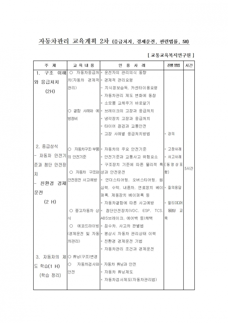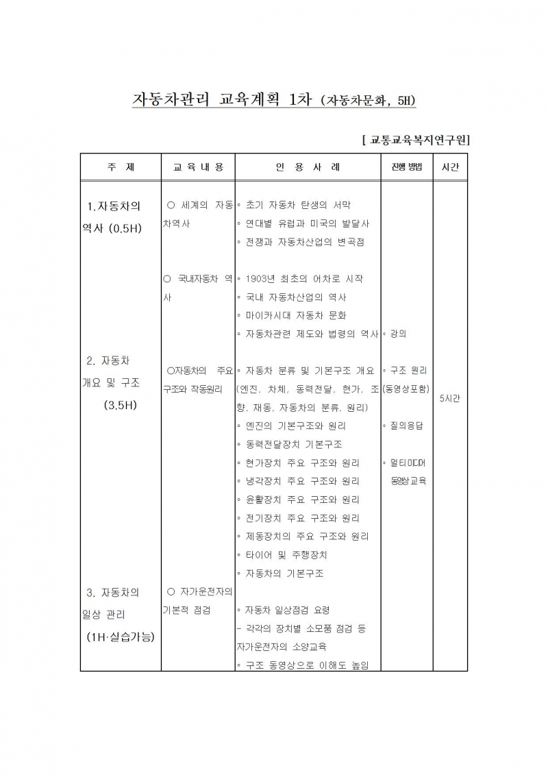 자동차관리 교육을 폭넓게 10시간으로
