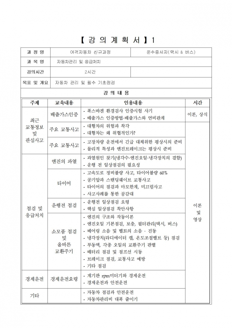 제목 운수종사자 신규과정 강의계획서(택시, 버스) 조회수 229