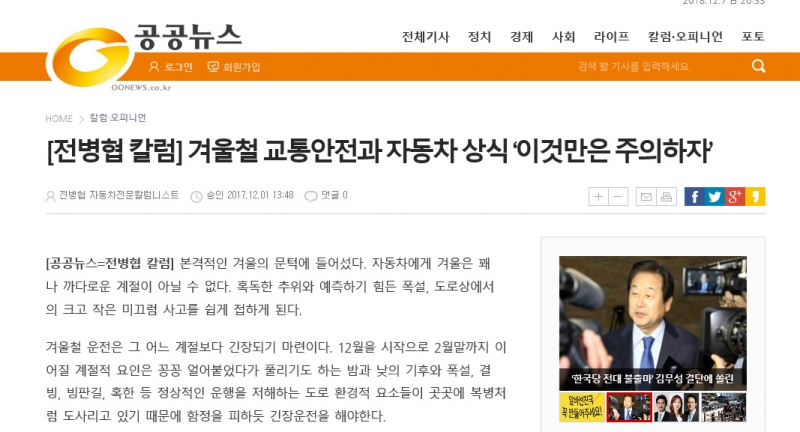 [전병협 칼럼] 겨울철 교통안전과 자동차 상식