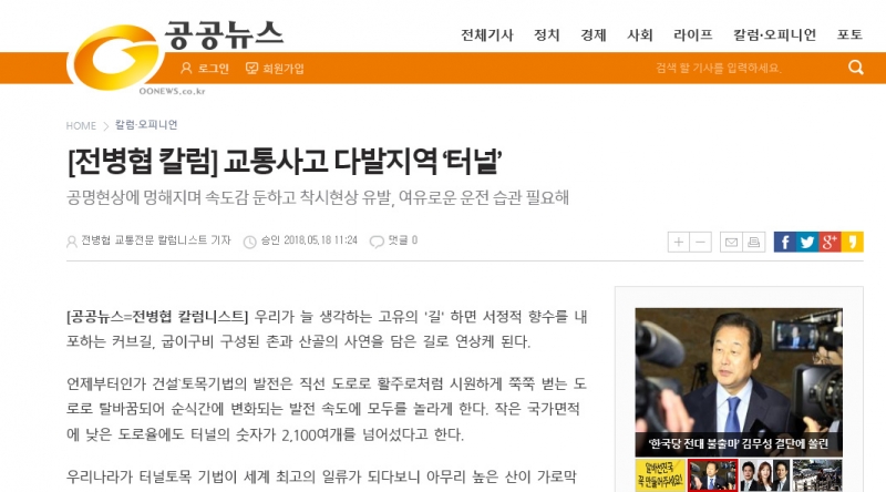 [전병협 칼럼] 교통사고 다발지역 '터널' 네이버 다음 뉴스