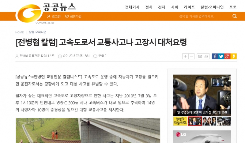 [전병협 칼럼]고속도로에서 교통사고나 고장시 대처요령/네이버 다음 2018.07.05 기고