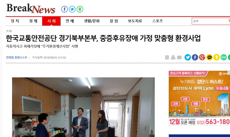 어느 재난처럼 교통사고의 불행도 갑자기 찾아온다. 문 듯 찾아온 가족의 교통사고는 아무 문제없이 평온하던 가정이 풍비박산에 가족 모두가 불행에 빠지는 경우가 많다. 대부분 나와는 관계없는 것으로 착각하며 지내다가 본인의 과실이든 타인의 과실로 추락하고 신음하는 가정을 우리의 주변은 많이 볼 수가 있으며 열악한 주거환경에서 어려운 이를 찾아내고 도움을 주는 활동은 적극 권장 되어야 한다. 한국교통안전공단 경기북부본부(본부장 유창재)는 교통사고로 중증후유장애를 입은 피해가정 지원 가족들의 신청을 받아 서류심사, 현장실사 등 공정한 심사를 통해 올해 관내 총 13개 가정의 주거환경 개선을 하였다. 2012년부터 자동차 피해가정 주거환경개선 업무를 시행해 왔으며, 올해 경기북부본부에서는 지역 지원가정 중 1~4급 중증 후유장애인 가정을 대상으로 신청을 받아 주거환경, 소득 및 재산, 가족사항 등 심사기준에 따라 13가정을 최종 선정했다. 지난 5월부터 선정된 가정에 도배 및 장판교체, 문턱 개선, 화장실 단차 제거 및 비데 설치, 싱크대 개선 등 맞춤형 주거환경 개선을 지원하여 주거 편의성을 향상시키는데 역점을 두었다. 경기북부본부 조경수 처장은 교통사고 피해가정에게 조금이나마 도움이 되기를 바란다” 며 “앞으로도 지원가정에 실질적으로 도움이 될 수 있는사업을 지속적으로 확대해 나갈 것” 이라고 밝히고, 주변에서도 장애인가정에 대한 지원과 관심을 당부했다. |