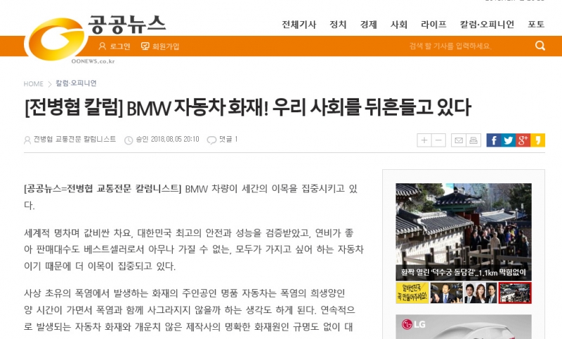 [전병협 칼럼] BMW화재! 우리사회를 뒤흔들고 있다/네이버 다음 2018. 08. 05