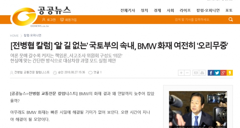 BMW 화재 원인조사 국토교통부, 왜 어렵게 가나?/네이버 다음 2018.08.27