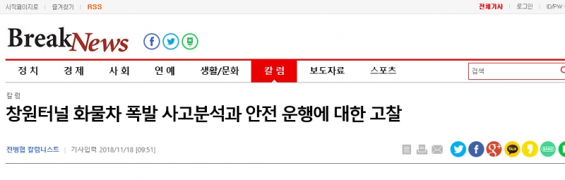 사고 직전 자동차가 멈추지 못하고 1차선에서 2차선으로 차선을 순간 휘청 이탈하고 다시 1차선으로 회복하고는 잠시 후 중앙분리대를 받은 것으로 볼 때 뒷브레이크에 장애가 있고 앞바퀴만 제동력이 작동하면서 자동차의 급격한 롤링에 의해 자동차의 방향성이 틀어진 것으로 운전자도 브레이크가 터져 있음을 그때 처음 알았을 것이라는 추정을 한다. 그 물리적인 운동에너지의 힘에서 앞 브레이크로는 통제가 힘들고 그 원인으로 자동차는 차선이탈과 차체를 휘청거리게 되었을 것이다. 적재물은 트럼통 22통과 20리터 174통을 실었다. 5톤 적재함에 위험물질을 과적으로 운행하는 것도 위법이지만 그 적재물이 요철에 의한 충격과 진동, 가감속력, 원심력, 로-링, 피칭, 바운싱 등 자동차의 운행 여건에서 어떻게 견고하고 이탈하지 않도록 결박할 수 있나 도저히 상식적으로 불가능한 운행 형태다. 사고차량의 운전자가 76세의 고령이다. 고령 운전자라는 나이만을 탓하는 것은 문제가 있다고 본다. 경륜에 의한 안전운전에 긍정적 많은 장점도 있을 것이다.