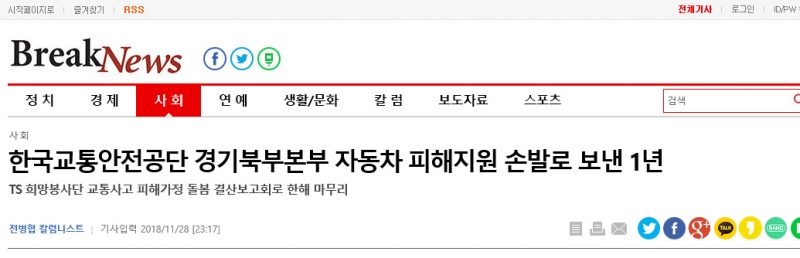 예기치 못한 교통사고는 정상적인 가정이 파탄으로 추락한다. 대부분 중증 후유장애 피해가정은 정서적, 경제적으로 절망의 늪에 빠지고 정상적인 사회 구성원으로 나갈 수 있는 힘을 잃은 상태로 비참한 생활이 된다. 이들에 경제적인 도움을 주는 것도 꼭 필요하지만 이보다 먼저 심리적인 안정을 찾게 하는 함께 어우러지며 생활하며 심리상담, 체험학습 등을 함께 반복하는 것이 꼭 필요한 내용이다. 한국교통안전공단 경기북부본부(본부장 유창재)는 11월 28일 자동차 사고 피해가정 지원을 위해 운영되는 TS희망봉사단의 2018년 결산 보고회를 하였으며, 이날 행사로 봉사단원들의 노고에 대한 격려와 우수사례와 노하우 공유, 봉사단 운영 활성화 방안, 봉사단원 증원 방안 등 토론회도 함께 진행됐다. ▲ 11월 28일 TS희망봉사대 2018 결산대회 후 봉사단원 기념사진 촬영 © 전병협 칼럼니스트 |