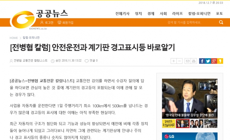 [전병협 칼럼] 안전운전과 계기판 경고표시등 바로알기/네이버 다음 2018.11.30