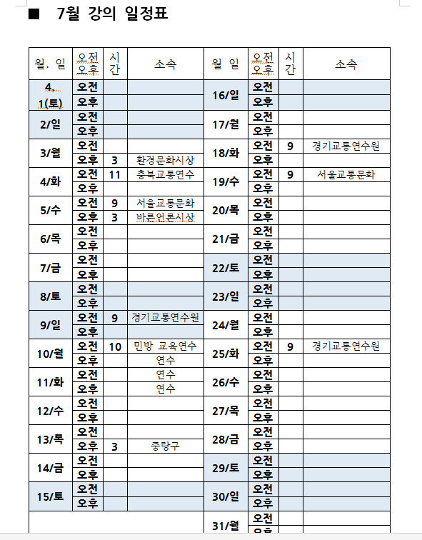 서울시교통문화교육원, 경기도교통연수원에 8년째 전임강사로 활동하고 있으며